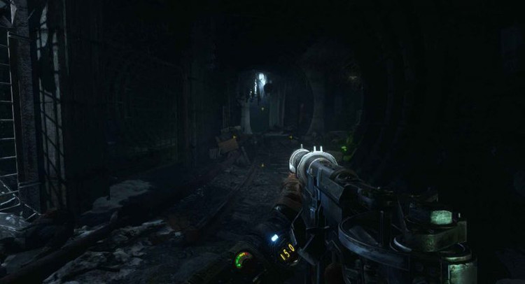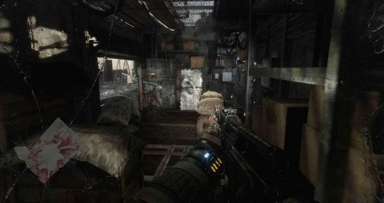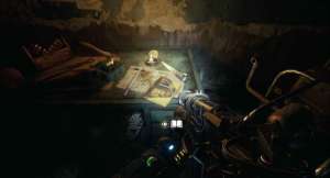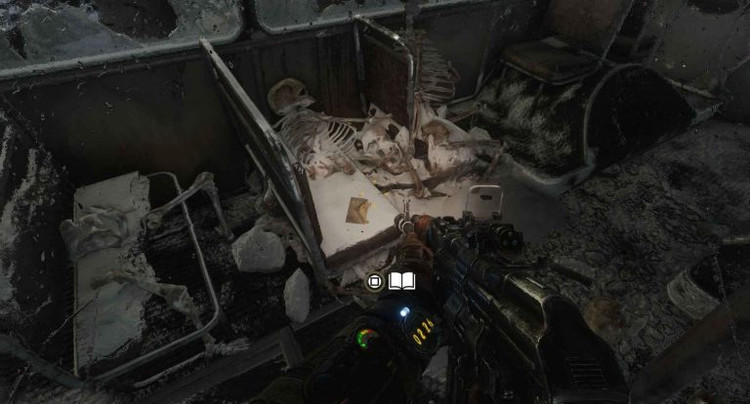 В начале уровня вы достигнете той части Метро, где нужно сразиться с несколькими мутантами. Оказавшись в этой части туннеля, показанной ниже, посмотрите направо. Первая страница дневника лежит на столе.