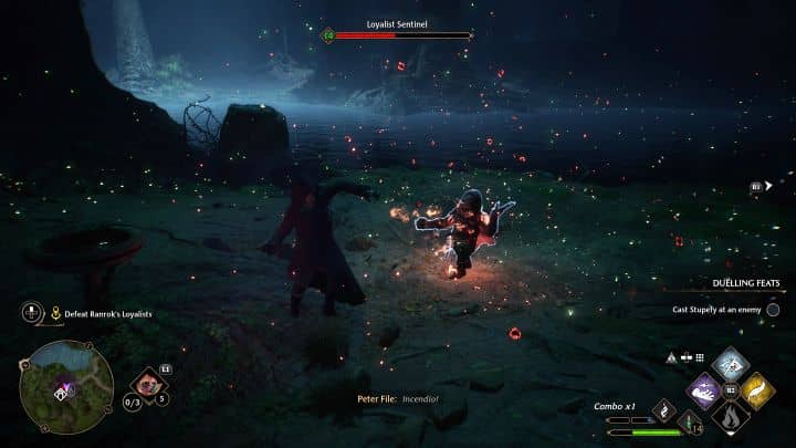 Когда вы попытаетесь воспользоваться входом в гробницу, появится группа врагов, с которыми вы должны справиться. Не забывайте блокировать их атаки заклинанием Протего и используйте заклинания, цвета которых соответствуют цветам щитов, активированных гоблинами.