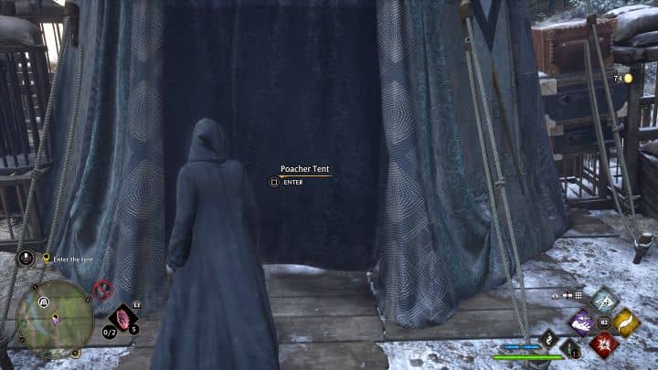 Исследуя палатку, вы можете продолжать действовать тайком или в прямом бою. Если вы решили действовать исподтишка, используйте базовое заклинание, чтобы отвлечь первого браконьера.