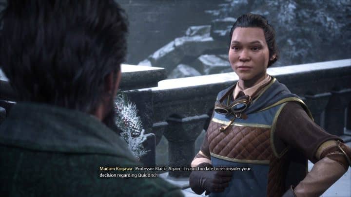 Отправляясь на встречу с миссис Когава, вы встретите, среди прочих, профессора Шарпа. В ходе беседы миссис Когава попросит вас вернуть соревнования по квиддичу - как вы ответите, значения иметь не будет.