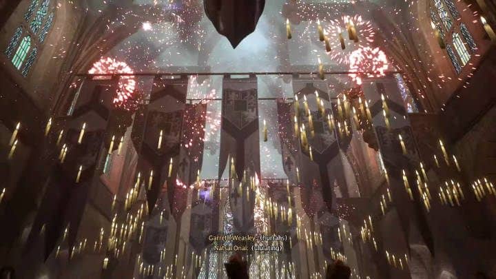 После разговора с профессором Уизли отправляйтесь в Большой зал и посетите церемонию окончания года в школе Хогвартс. После продолжительной киношной сцены квест и основная сюжетная линия игры «Хогвартс. Наследие» подойдут к концу.